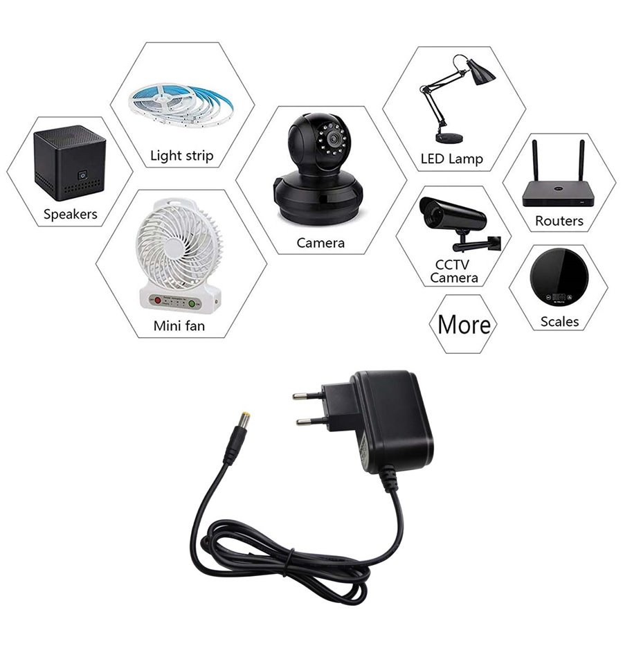 Questo prodotto è un alimentatore stabilizzato per la ricarica e il funzionamento di apparecchiature elettriche che utilizzano la connessione DC. Trasformano la tensione di rete in uscita 12V e forniscono protezione da cortocircuito, sovraccarico, sovratensione e sovracorrente