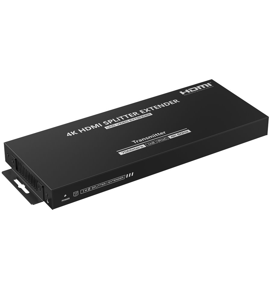 - Divide ed estende 1 segnale di ingresso HDMI in 2 segnali di rete in uscita identici, raggiungendo una distanza di trasmissione di 70 m su un cavo Cat6