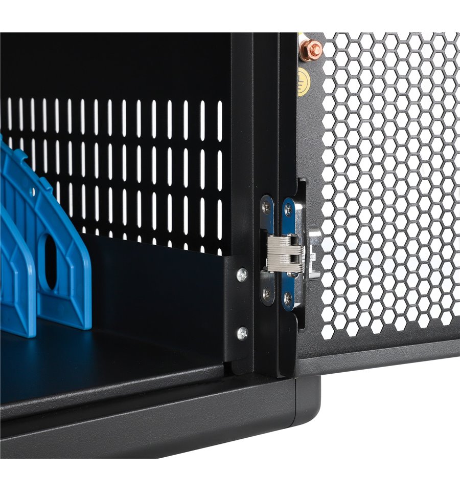 - Dodici ampi alloggiamenti per dispositivi, 395 (P) x 32,5 (L) x 290 (A) mm ciascuno, con divisori provvisti di sistema di gestione dei cavi integrato