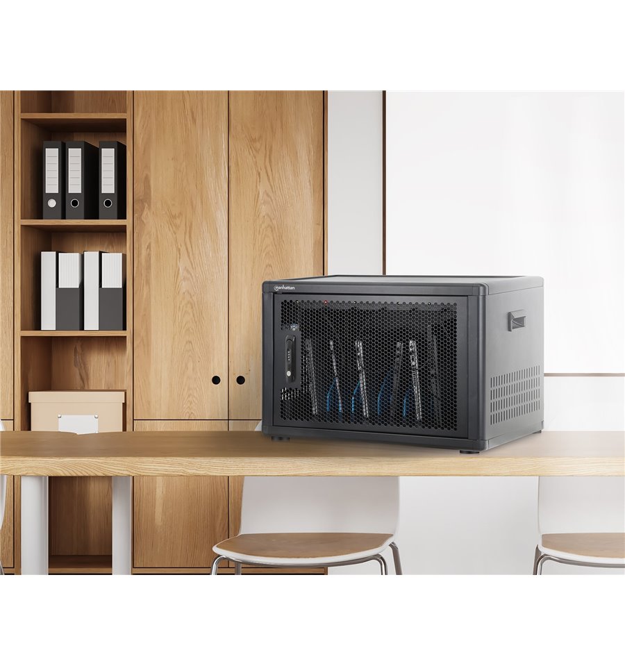 - Conserva e ricarica in sicurezza laptop, tablet, iPad®, MacBook®, Chromebook, telefoni e altri dispositivi fino a 16