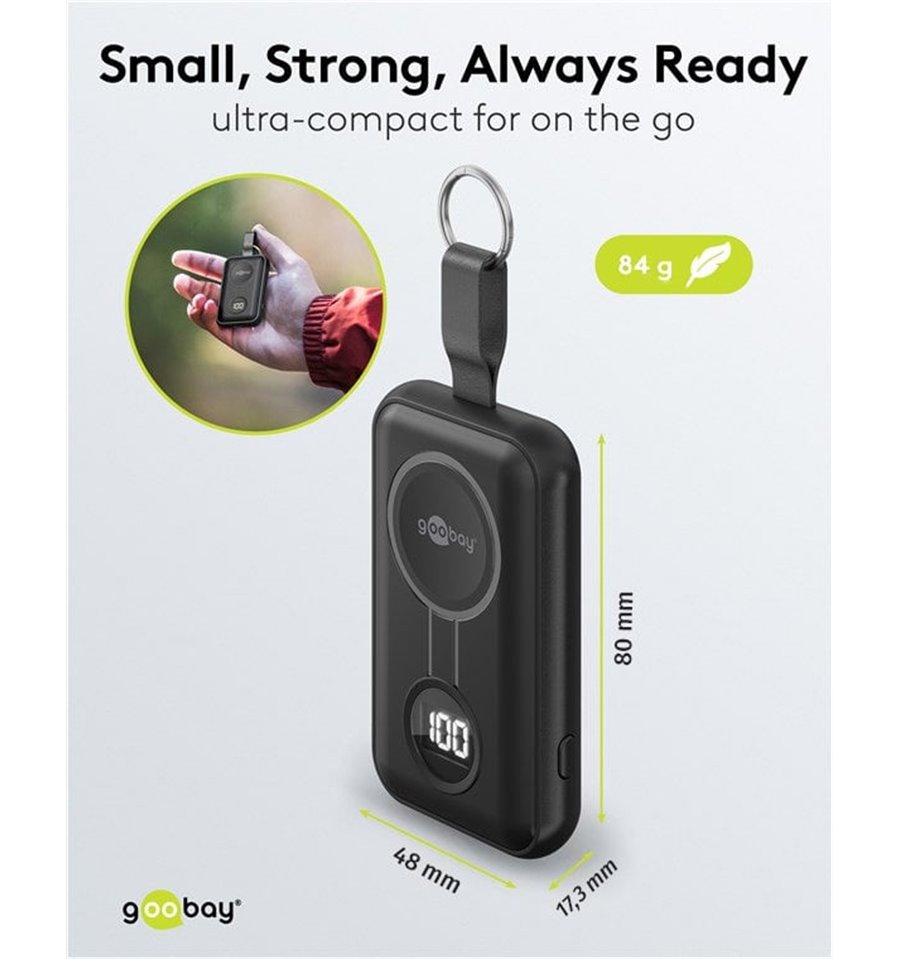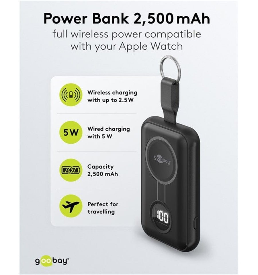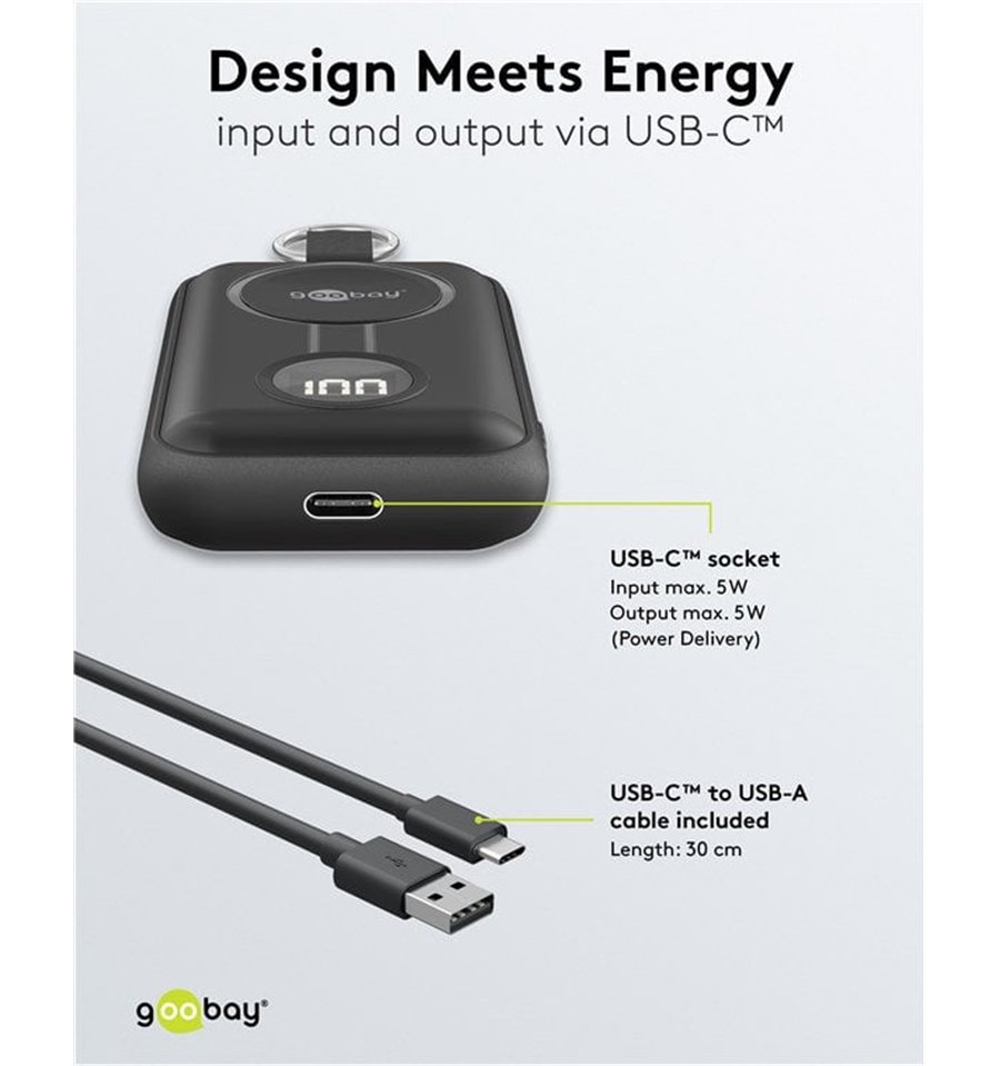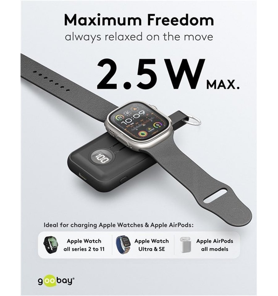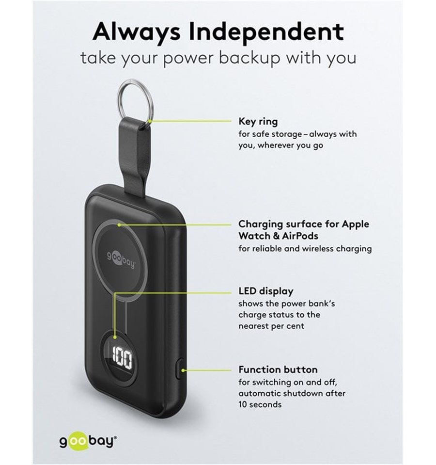 Goobay propone inoltre batterie ricaricabili, caricatori e alimentatori per rispondere alle esigenze di alimentazione non solo dell’utente di computer ma anche dei possessori di apparecchiature digitali e multimediali portatili (per esempio cavi e accessori per iPod, iPhone, iPad e numerosi altri modelli di telefonini).