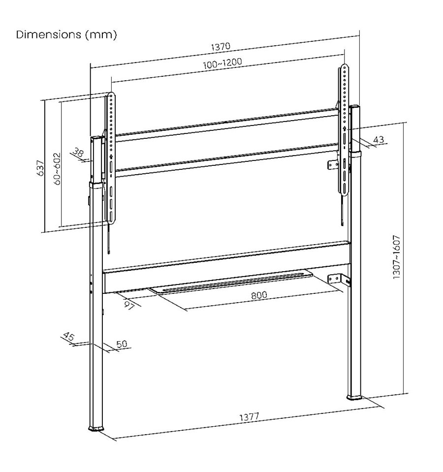 Il potente motore offre un ampia capacità di sollevare e abbassare anche i televisori da 60-110 più pesanti (fino a 120 kg).