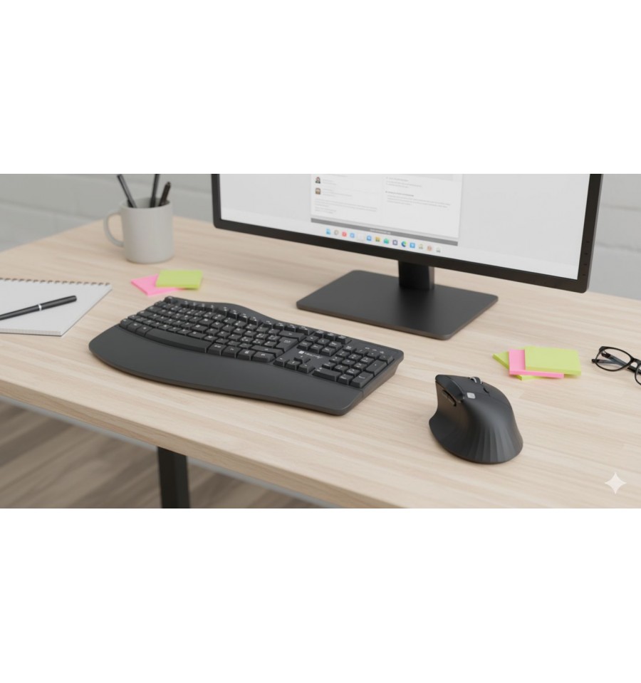 Grazie al suo design curvo e layout full-size, questa tastiera favorisce una postura naturale delle mani, riducendo l’affaticamento durante lunghe sessioni di digitazione.